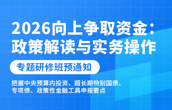 “2026向上爭取資金:政策解讀與實務操作”專題研修班預通知——把握中央預算內投資、超長期特別國債、專項債、政策性金融工具申報要點 各有關單位:2026年是“十五五”開局之年,重大項目投資成為穩(wěn)定經......